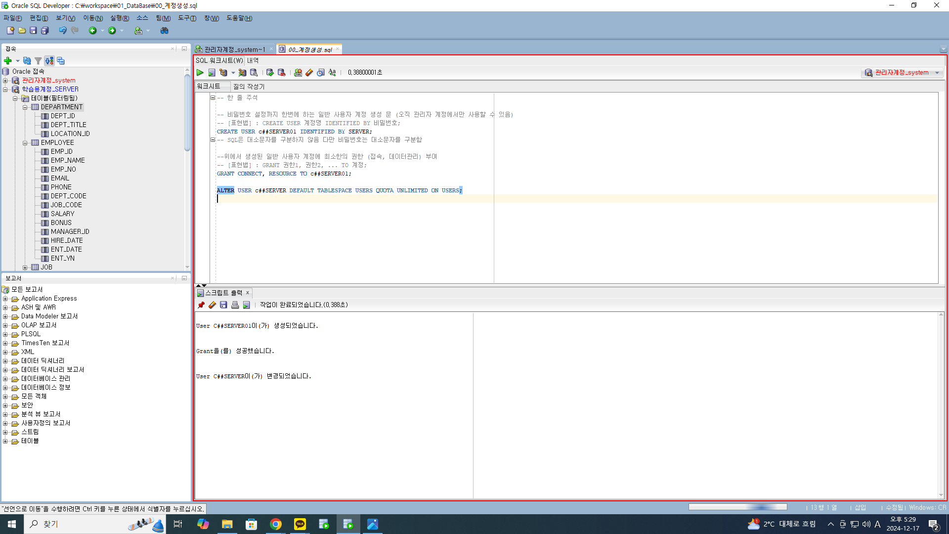 --위에서 생성된 일반 사용자 계정에 최소한의 권한 (접속, 데이터관리) 부여