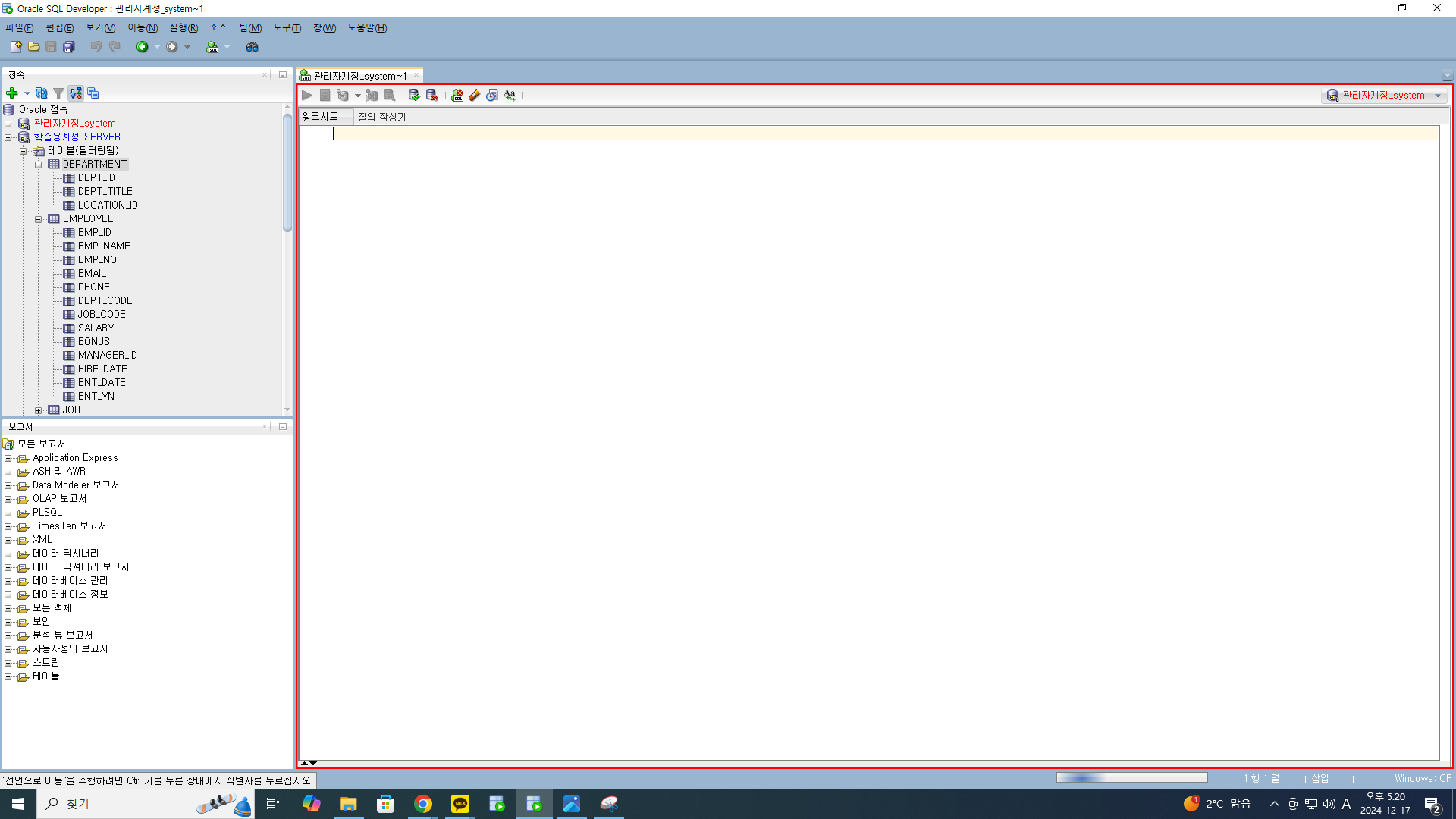 접속이 완료되면 SQL워크시트가 나옵니다.